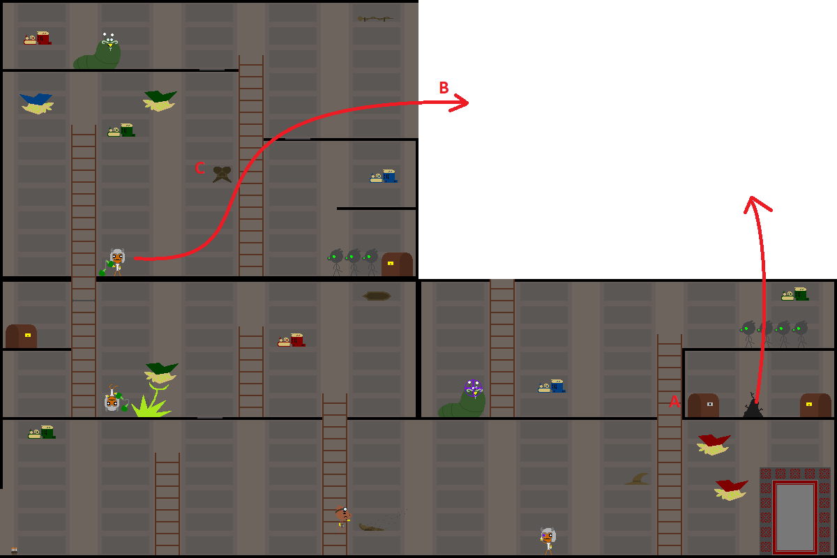 Top room, right ladder:
